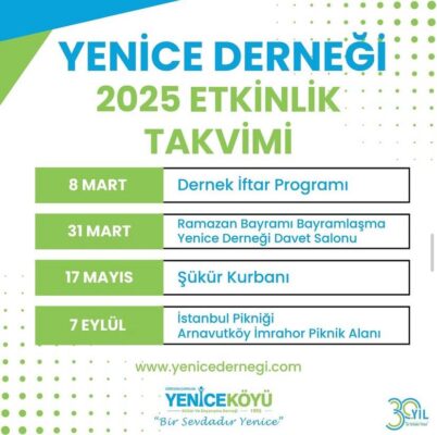 Ramazan Bayramı Bayramlaşma Programı -2025- ????Yenice Derneği Davet Salon [...]